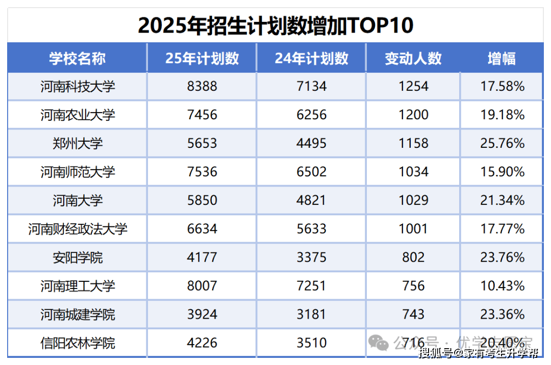 排名前十的扩招院校均为河南省内院校,且增幅均跨越10%,这也申明省内院校对考生起到了积极的支持感化,同时也申明有更多的考生能够上这些院校的机遇。