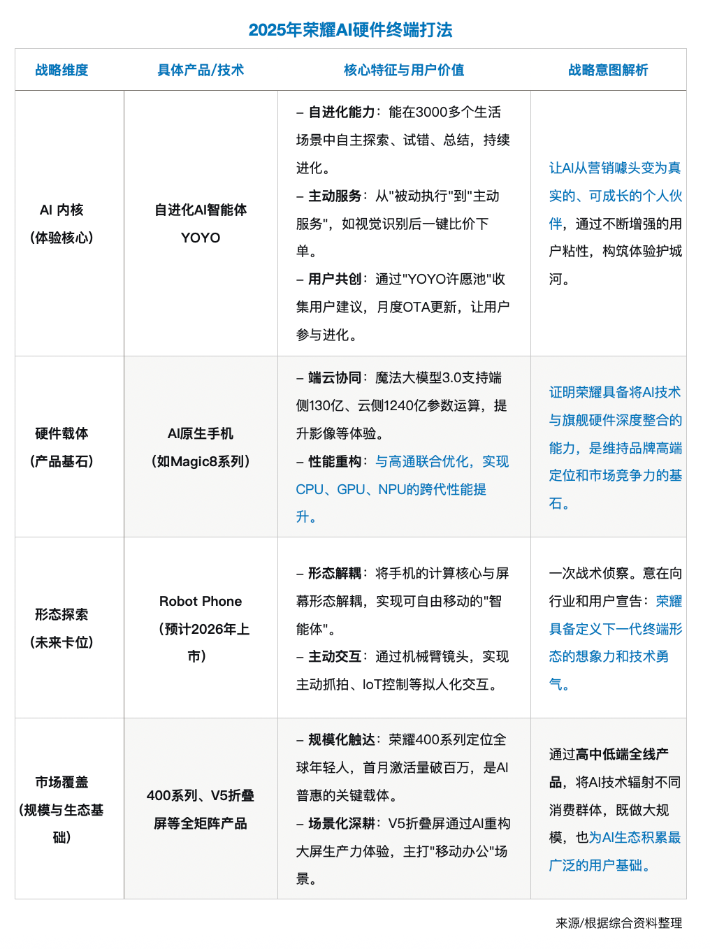 当下,一个物理AI方兴日盛、财产鸿沟沉构的环节时间窗口曾经打开。荣耀所参取的已不只是一场产物迭代的竞赛,更是一场关于生态尺度、用户场景取价值链卡位的系统性抢夺。这一阶段,荣耀的竞合图谱已从手机扩展至所有投身于下一代智能终端形态摸索的科技企业——无论是硬件巨头、AI原生公司仍是跨范畴生态玩家。正在AI终端手艺线仍处于竞合摸索的当下,可否正在物理AI取终端智能融合的晚期阶段成立手艺壁垒、构成生态号召力并建立可持续的贸易模式,将间接决定荣耀正在将来财产款式中的话语权取价值分派地位。这是一场高投入、长周期、高不确定性的计谋博弈,也是其从一家手机公司迈向AI终端生态公司的必经之。